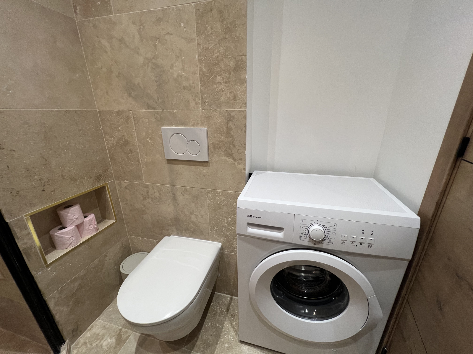 La cuisine est entièrement équipée avec un four, des plaques à induction, un micro-ondes, un lave-vaisselle, une machine Nespresso et une table à manger. Un lave-linge est également à votre disposition.