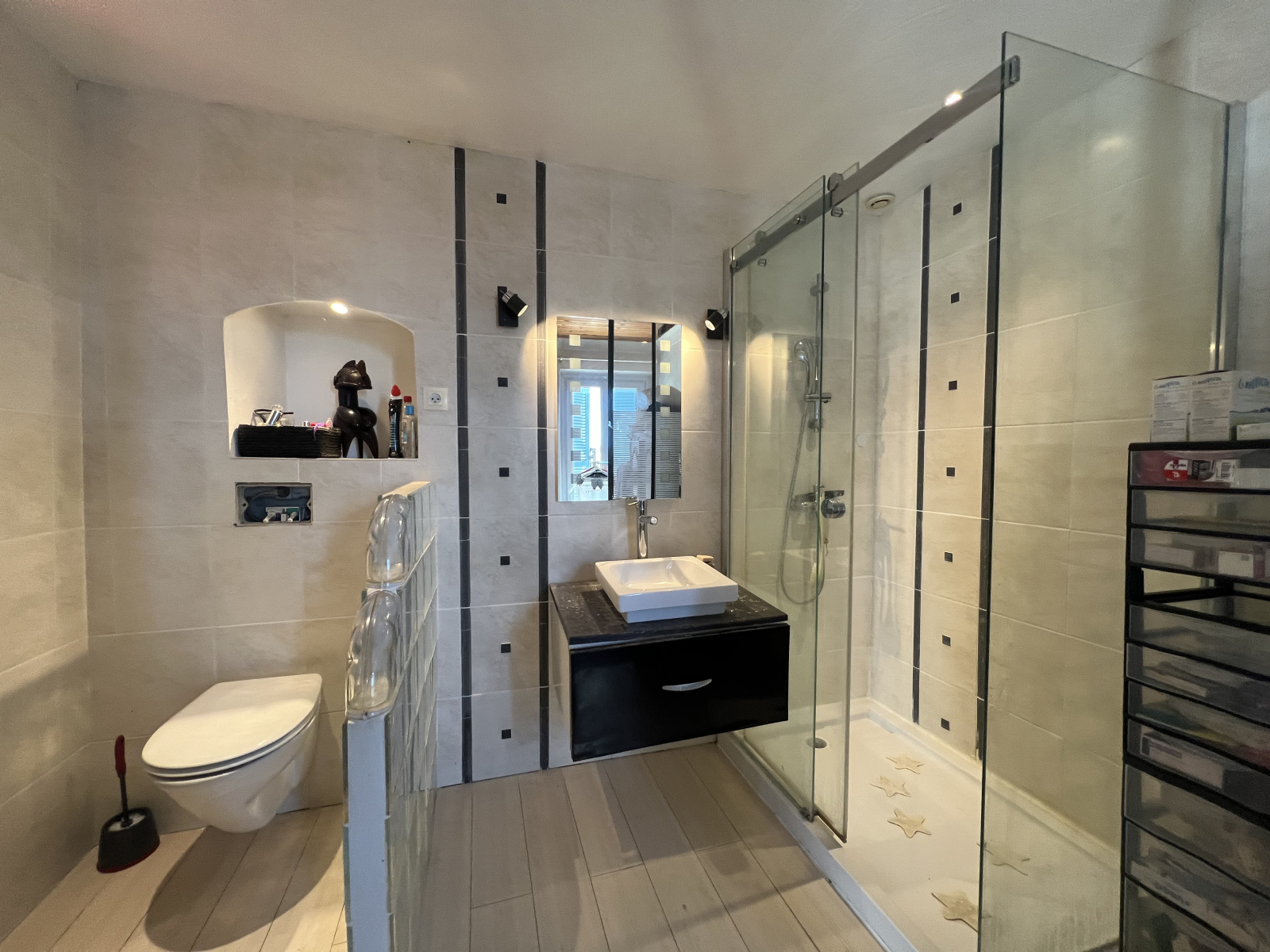 Au rez-de-chaussée, vous trouverez un hall d’entrée, une grande véranda baignée de lumière, une cuisine séparée et équipée, une salle à manger, un séjour convivial, ainsi que deux chambres communicantes avec coin cuisine, salle de bains et WC – parfait pour accueillir famille ou amis en toute indépendance.