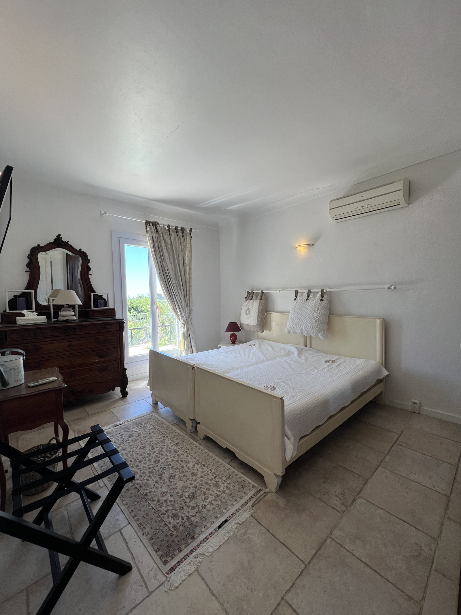 À l’étage, quatre chambres supplémentaires dont une suite avec dressing, deux salles d’eau, et une magnifique terrasse solarium offrant une vue dégagée sur la mer et le village.
